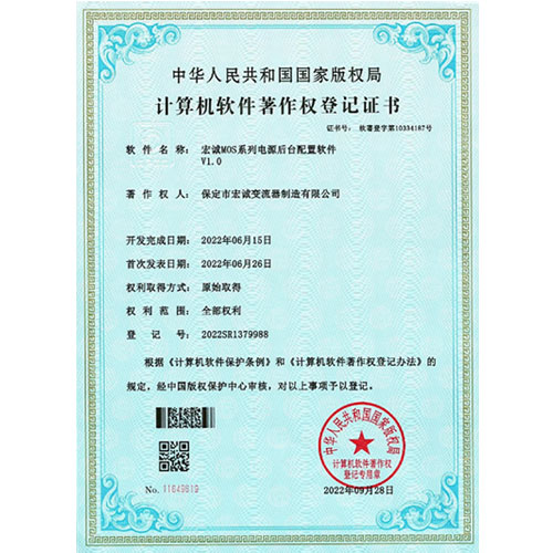 計(jì)算機(jī)軟件注冊(cè)權(quán)登記證書——整流電源開放式測(cè)試平臺(tái)V1.0