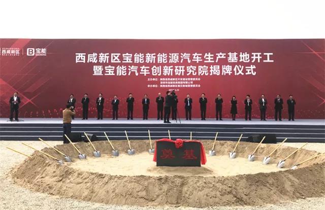 3月23日西咸新區(qū)寶能新能源汽車生產(chǎn)基地開工暨寶能汽車創(chuàng)新研究院揭牌儀式在陜西省西咸新區(qū)秦漢新城舉行。該項目總投資約400億元,規(guī)劃產(chǎn)能100萬輛(其中一期50萬輛)新能源汽車及配套項目,整車和零部件制造產(chǎn)值將超過千億元。這是寶能在新能源汽車產(chǎn)業(yè)的重大布局,也是西咸新區(qū)開工建設的千億級工業(yè)產(chǎn)業(yè)項目。